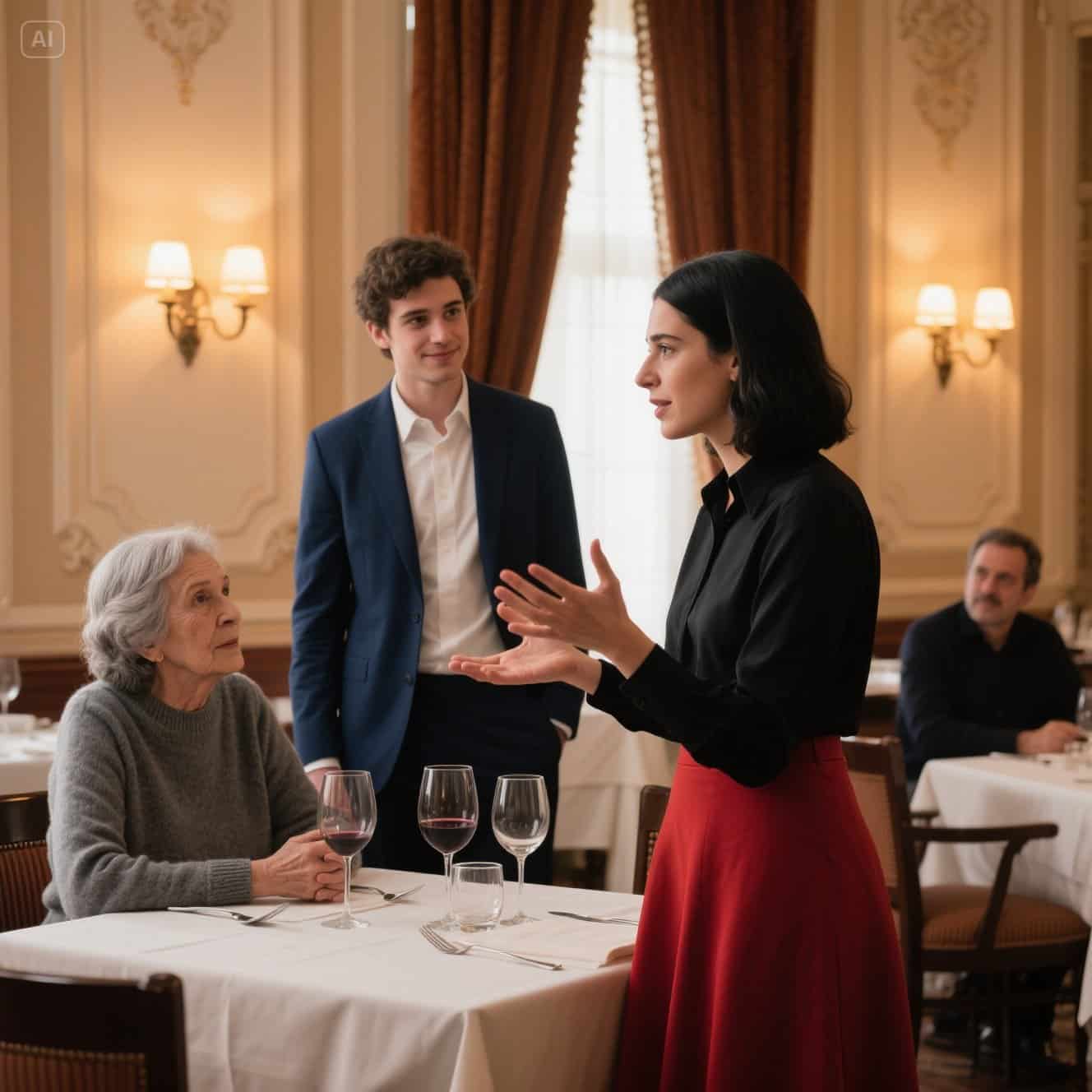 Sebastián Castellanos stopped speaking to Ricardo mid-sentence, his attention completely captured by the interaction between his mother and the shy waitress who seconds before had been practically invisible to him. Ricardo also froze, his professional expression momentarily cracked with confusion. Patricia, who had been watching from her position near the kitchen entrance, stepped forward, clearly worried that something was wrong. But Laura was no longer thinking about protocol or rules.